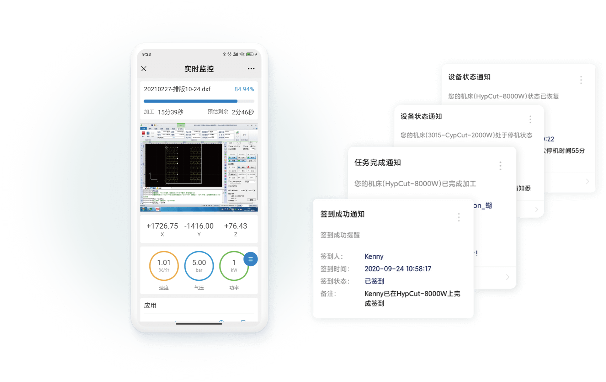 【我的機床】基于激光切割機床的實時數(shù)據(jù)采集,通過工業(yè)大數(shù)據(jù)分析,實現(xiàn)機床全生產(chǎn)過程監(jiān)控,輔助機床用戶管理改善。